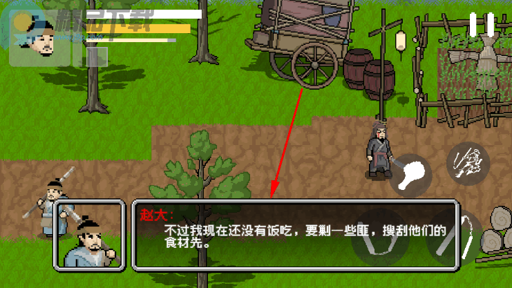 3、赵大会告诉玩家需剿匪来获取食材