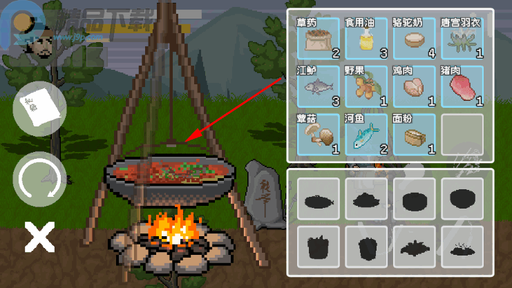 料理制作与增益:击败敌人后会掉落食材,玩家可前往火堆消耗食材制作料理,这些料理能为赵大提供各种增益效果。