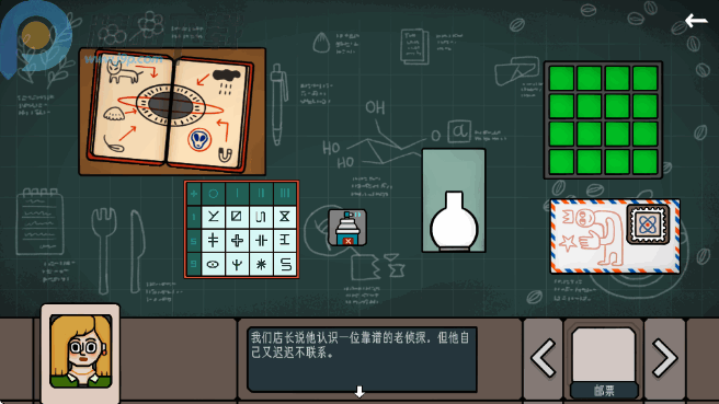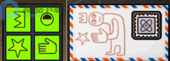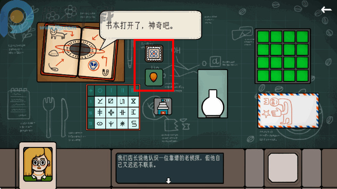 1.打开书,拿【种子】【邮票】,【邮票】贴到【信封】上,拿【杀虫剂】,拿「人物卡2」,玩1221小游戏(图1)。