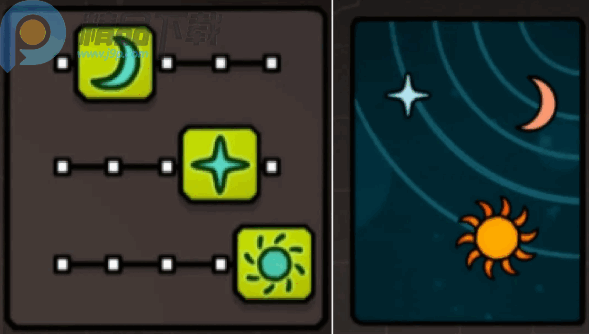 6.解开「人6」日月星谜题(图9),得【小刀】和「人物卡7」。玩进球小游戏(图10)得【指针】,【小刀】切开苹果,得「人物卡8🤖」,将【指针】安在表盘上。