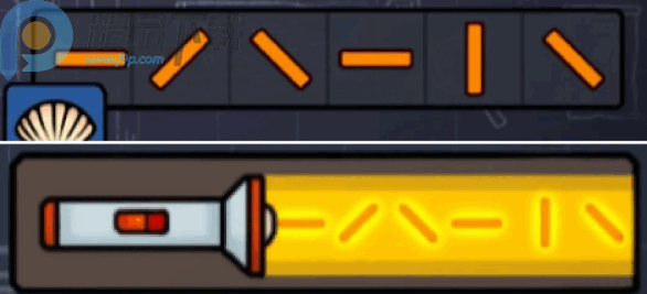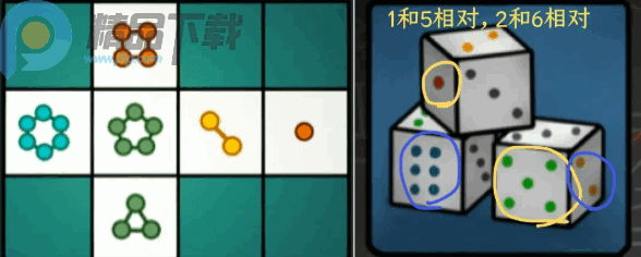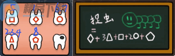7.解开骰子平面图谜题(图11),得【黑板擦】。【黑板擦】擦「人6」中黑板,解开「人3」中牙齿谜题(图12),得【放大镜】。【放大镜】放大「人5👮」右下角符号板,解开符号密码(图13),得【贝壳】。