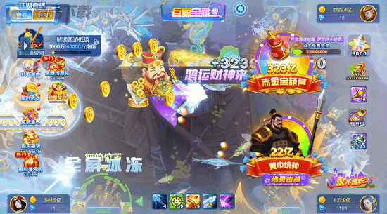 2、道具丰富,锁定、冰冻等辅助道具助力捕鱼,抽奖券、场景增强道具带来别样惊喜;