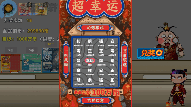1、幸运抽奖模式游戏中的幸运抽奖模式别具一格。玩家消耗一定数量的金币就能参与抽奖,奖池里藏着各种丰厚奖励,除了大量金币外,还有特殊彩票道具,比如能提高中奖概率的“幸运符彩票”、可免费刮奖的“免费刮刮券”等。而且抽奖过程充满惊喜,每次转动转盘或抽取卡片,都让人满怀期待,说不定就能抽到超级大奖。