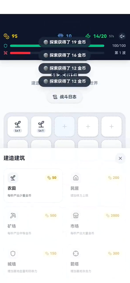 2. 一键点击即可快速创建和升级建筑,操作轻松便捷。