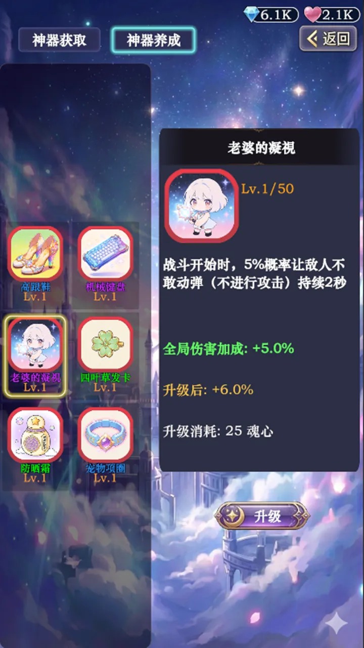 神器是中后期提升战力的核心系统,持有即生效,无需装备!
