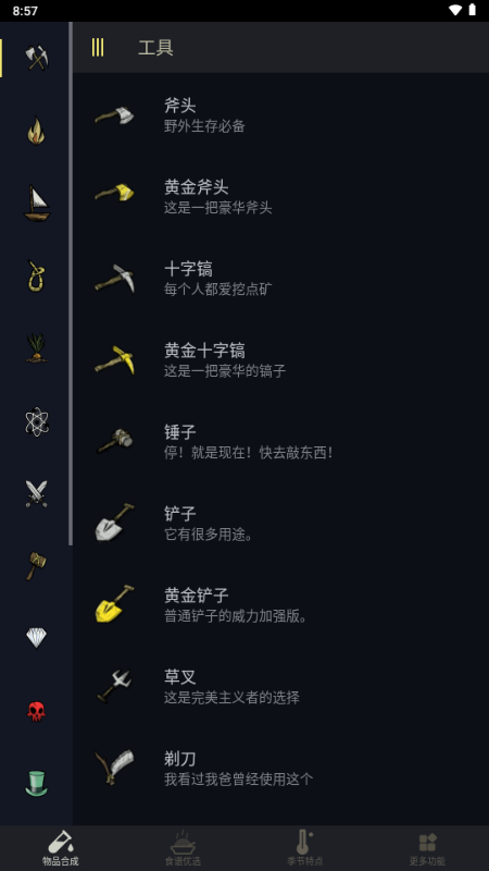 SurviKit 游戏助手是一款专注于提升玩家实战水平的实用辅助工具,专为游戏新手量身打造,助力用户快速掌握技巧、成长为资深玩家。软件聚焦各类装备相关核心疑问,从合成配方、使用思路到素材获取途径,都提供清晰详尽的解答,有效解决玩家在探索过程中遇到的各类困惑。