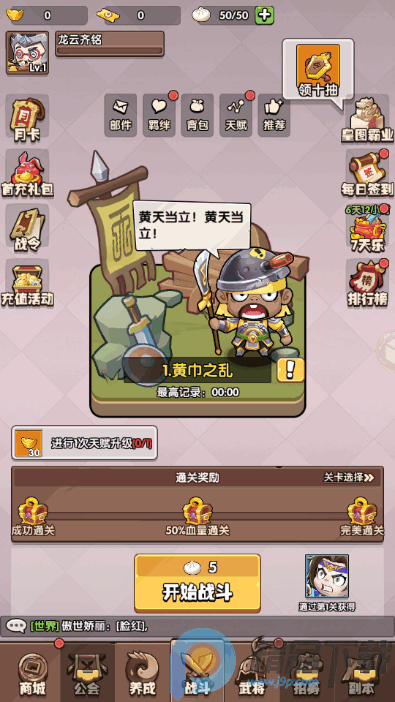 1、选择一个武将上阵