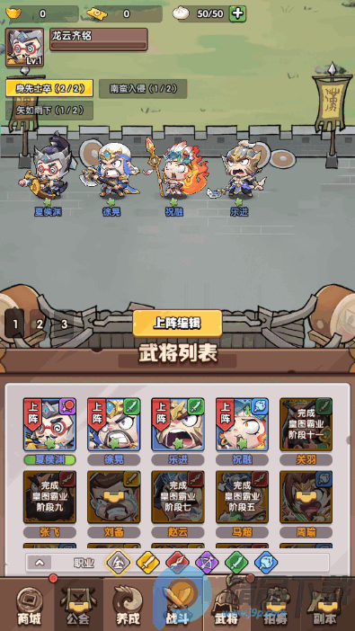 升级进阶:玩家可以通过消耗经验丹和金币来提升武将的等级,等级越高,武将的属性和技能效果就越强。武将达到一定等级后可进行进阶,解锁新技能和天赋。