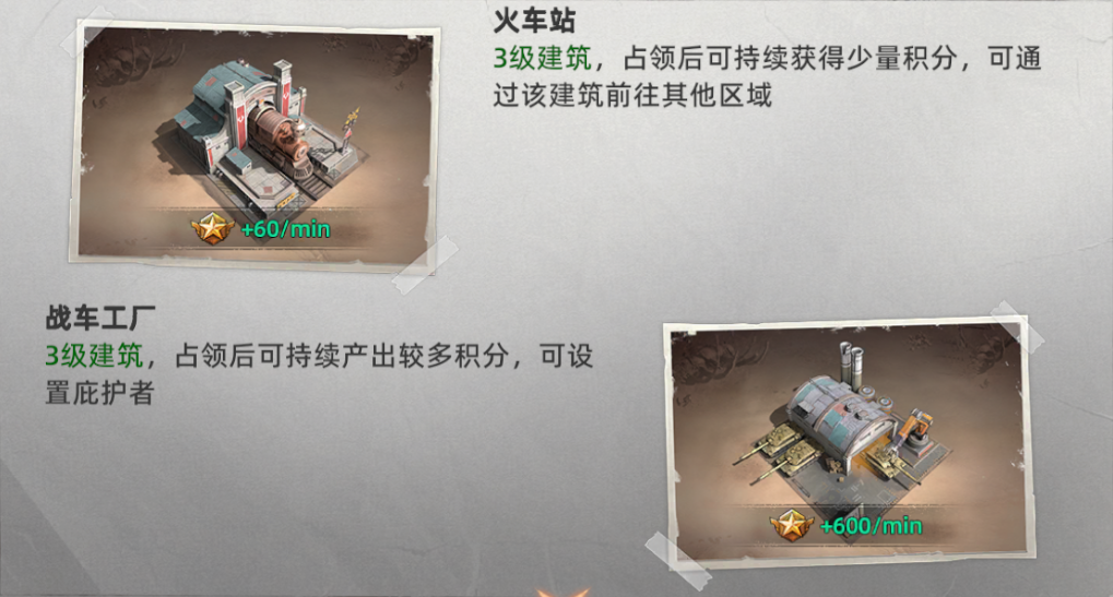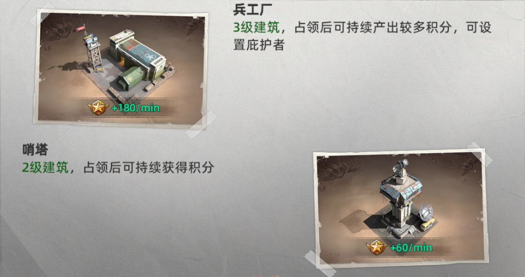 各建筑占领积分详情: