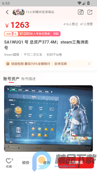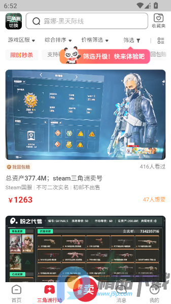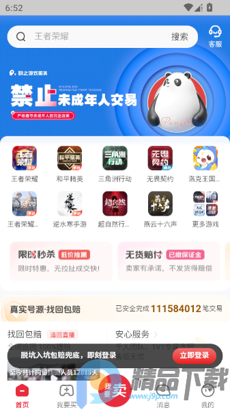 功能也很强大,能在线实时了解不同游戏,享受精准交易服务;整合热门游戏资源,满足多样需求。优势明显,采用先进加密技术和多重验证机制保障交易安全;内置即时聊天方便沟通;还有游戏陪玩、代练服务。有了它,让你的账号交易更安全、便捷,快来下载体验吧!