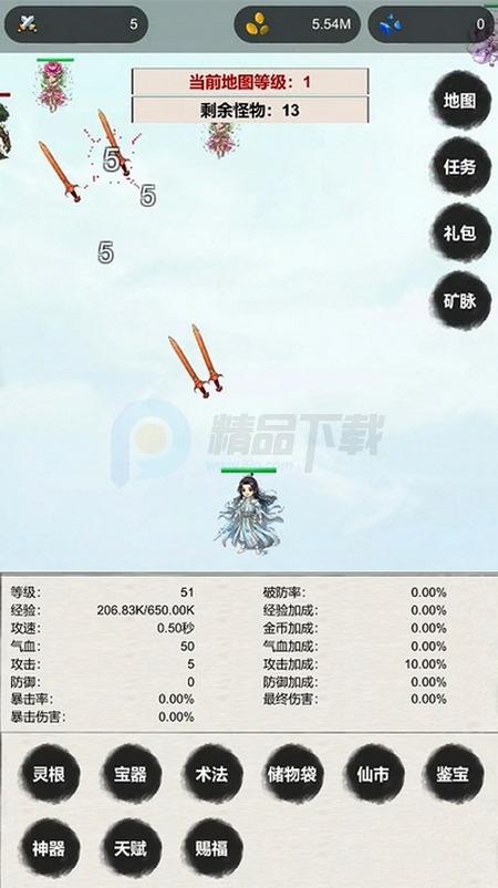 3. 灵根法宝神器天赋仙尊赐福等多重养成系统,助力一路飞升。