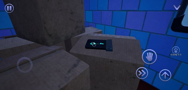 5、然后拾取桌子上的蓝色按钮装置,即可搭乘平台下降到下层。现在开始你的冒险解谜之旅吧!