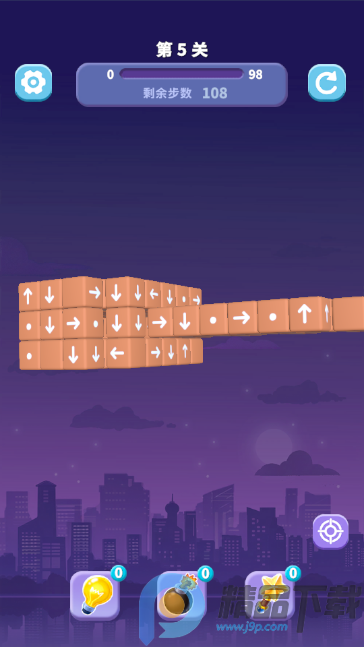 消除机制:策略移动和旋转棋盘上的方块,使相同方向的箭头拼接成完整行或列,触发消除效果并清理棋盘空间,为后续操作创造条件。