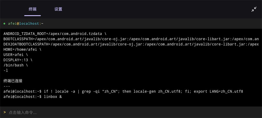 应用内置 PRoot 技术,无需 root 权限即可在 Android 设备上运行完整的 Linux 容器。支持切换不同的 Linux 发行版 rootfs,兼容 Debian、Ubuntu、Arch Linux 等多种发行版。每个容器可以独立配置语言环境、共享文件夹和启动命令。