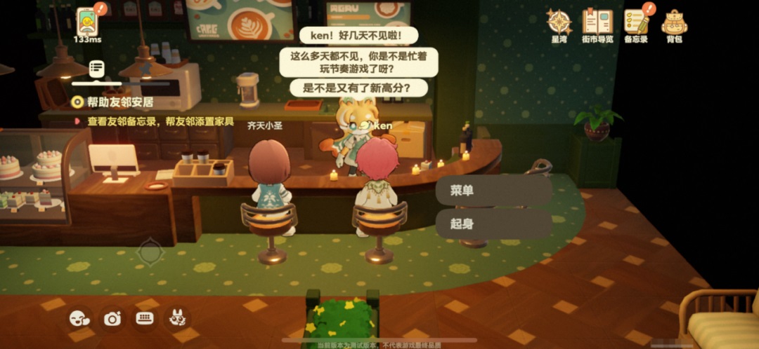 - 弱引导互动:社交设计贴合休闲调性,无强制社交指标,玩家可主动发起互动(如给陌生人点咖啡),也可选择独处,既避免社交成为负担,又能让玩家在自然互动中收获情感联结,比如通过闲聊、共同参与活动结识好友,留存鲜活的社交回忆。