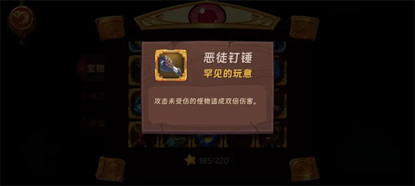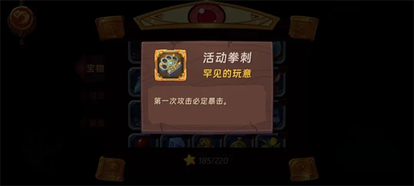 活动拳刺,恶徒拳刺,恶徒钉锤,看宝物描述就知道效果,适用于中期速刷1-1刷资源,可以用希尔进去配合宝物一个技能清屏,后期出门几千攻击力就不需要这个增幅了。