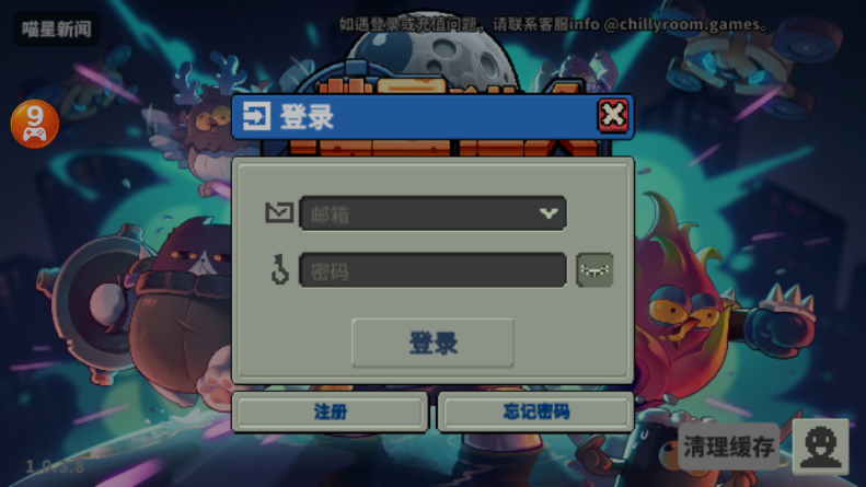 1、打开喵星猎人官方版,点击屏幕中间的登录按钮,然后输入手机号或者邮箱账号登录;