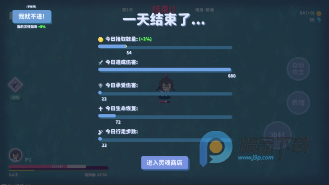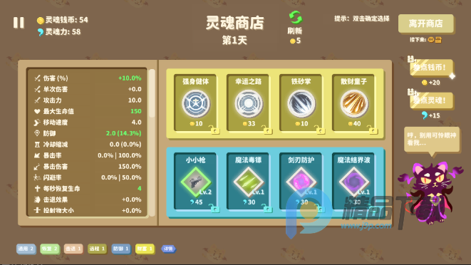 养成与商店:通关获得的灵魂钱币可在灵魂商店购买道具武器,永久提升角色属性,如攻击力、生命值、防御力等。