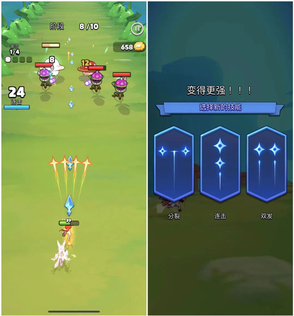可见,无论是游戏的界面设计、还是UI样式,亦或是RPG元素的设计方式,都极具海彼的特色,换一种说法是,《Kinja Run》是在《弓箭传说》和《PunBall》基础上的一次新的尝试,也是海彼这套成熟玩法框架的又一次延续。