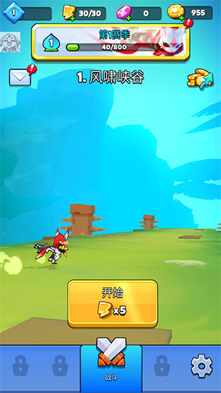 下图是游戏主界面,分为商店、天赋、战斗、装备、设置5个部分。其中天赋页可消耗金币和材料解锁天赋,永久增加属性。装备页则是穿戴、更换、强化装备等功能。战斗页面包含关卡选择、关卡礼包、各类任务、活动、内购礼包推荐等。
