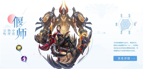 中程物理召唤职业,可控制傀儡参与战斗,善造机关,更能与诡谲偃甲合二为一。利用独有的连击点机制合理释放技能,可使偃师在不经意间取敌方性命。