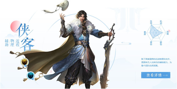 近战物理辅助职业,拥有多种团队增益技能,可以大大提升团队作战能力,更有金属甲加身,再辅以加血、免伤、无敌等技能,使侠客成为战场中的移动堡垒。