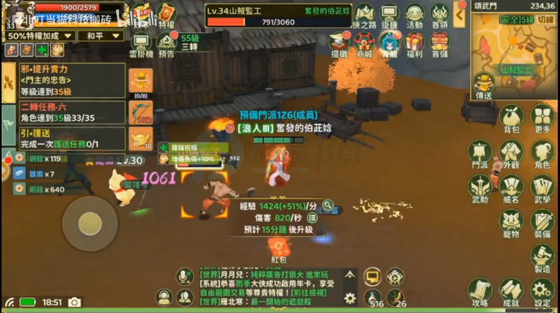 完成所有任务后,一定要进行野外挂机,挂机游戏核心经验获取来源,不仅提供大量经验还能获取装备、材料等等