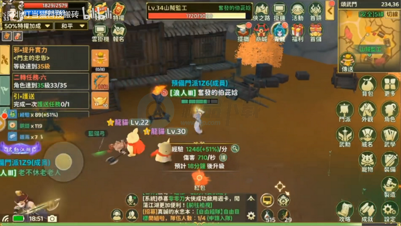 一定要组队进行挂机,组队可提供最高+50%经验,同时与队友同屏挂机还可+20%经验加成,大大提升效率。