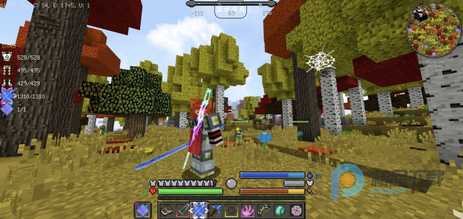 基于Tetra模组深度定制,玩家可通过收集材料制作神器模板,自由组合武器部件(如刃、柄、护手等),并调整属性加成。模组支持多维度锻造,玩家可解锁高级合成台,提升武器品质至“上帝级”或“Zienic级”,获得夸张数值加成(如暴击率提升65%、伤害增加75%)。