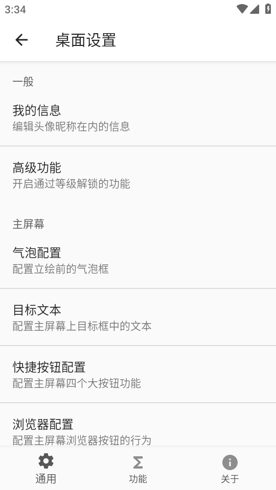 2、进入设置页面,选择功能即可操作,可配置气泡,文本和快捷按钮。