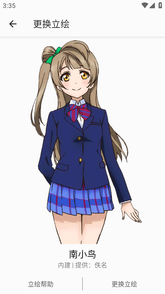 桌面设置 -- 立绘配置 -- 安装立绘包,然后选择您下载的立绘包,如果您看不到设备存储器,请在点击 安装立绘包 后弹出的选择界面的菜单选项中勾选 显示内部存储/SD卡 。