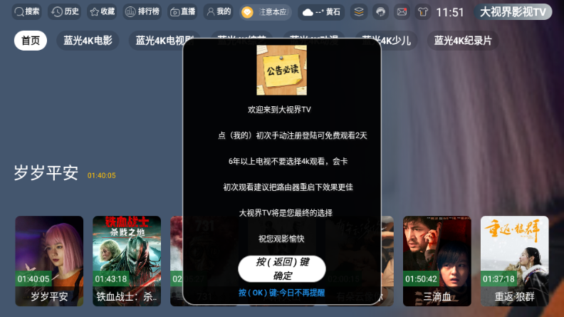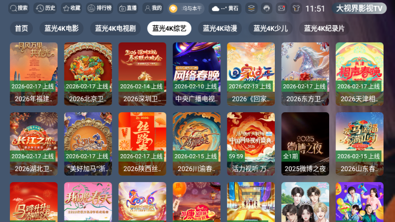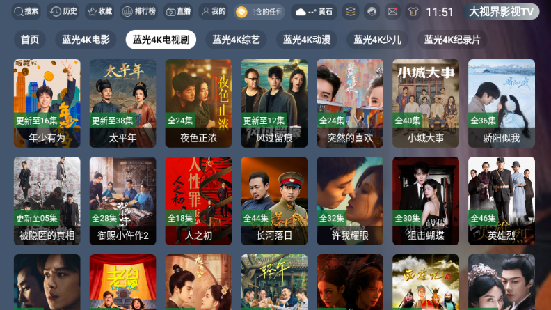 大视界影视 TV 是一款功能全面、适配大屏的视频播放应用,凭借丰富的影视内容与优化的播放体验,成为家庭观影的实用选择。软件覆盖电影、剧集、综艺、动漫等全品类内容,喜剧、悬疑、动作、言情等多元题材齐全,能满足不同年龄、不同喜好用户的观看需求。