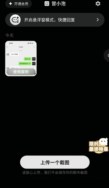 冒小泡是一款兼具AI聊天助手与关系管家功能的社交辅助APP,是帮助用户解决聊天尴尬、提升沟通能力、维护人际关系。用户可一键上传聊天截图获取高情商回复建议,通过独创好友记忆档案记住重要的人,同时享受场景定制回复、关系推进指导等服务,让沟通游刃有余,轻松护航各类社交关系。