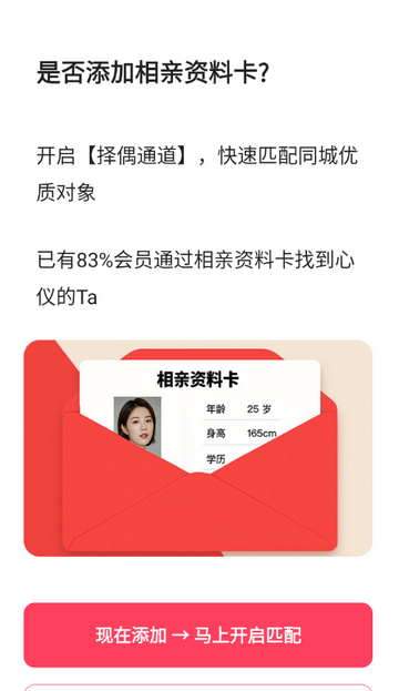 4、专属家长模式搭配沟通模板库,解决家长代择偶沟通不便的痛点,操作更便捷。