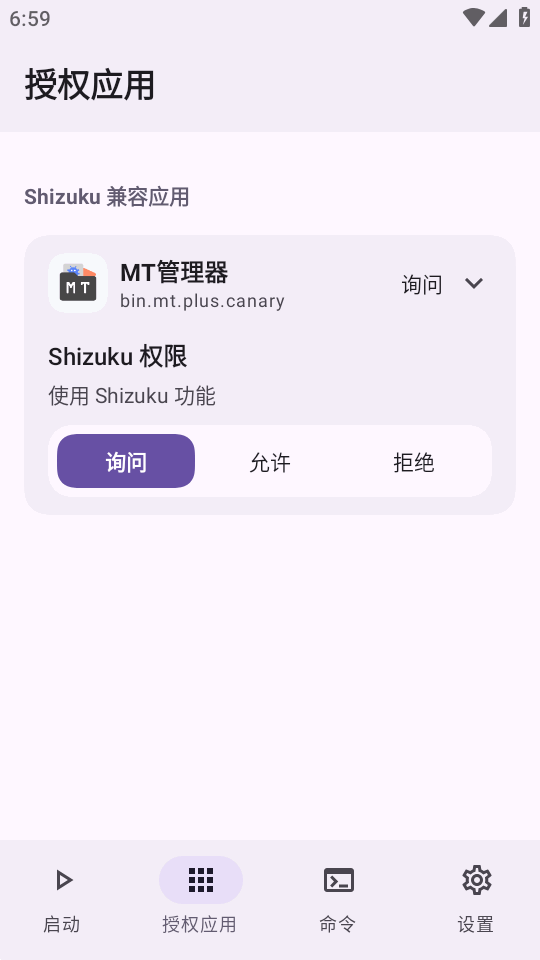 兼容层会自动拒绝来自 Shizuku Manager 的请求,避免冲突