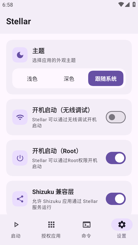 Stellar 内置了 Shizuku 兼容层,允许使用 Shizuku API 的应用无需修改代码即可使用 Stellar 服务。