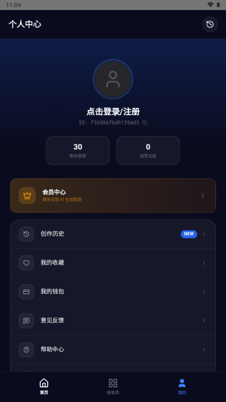 用户中心: 完整的用户体系,支持手机号及第三方登录,管理创作历史。