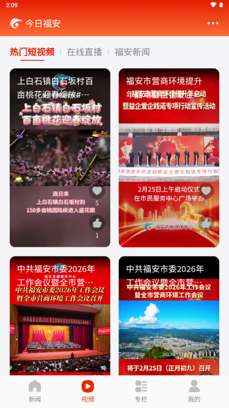 APP整合短视频新闻与实时直播功能,带你直击新闻发布会、节庆活动、重大工程现场,以更生动、更直观的方式还原新闻现场,传递真实福安声音。