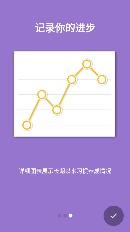 提醒。安排通知提醒你自己的习惯。每个习惯都可以在一天中选定的时间有自己的提醒。直接通过通知轻松检查或取消你的习惯。