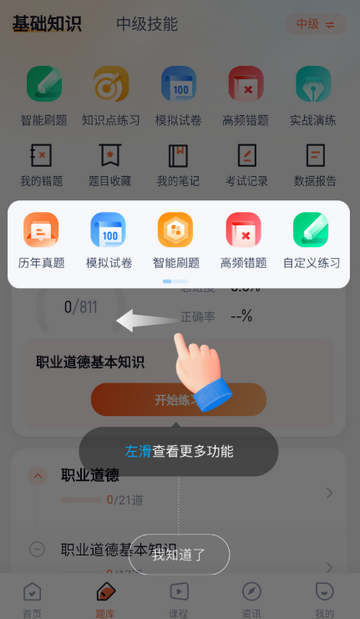4、点击题库,可开始智能刷题等