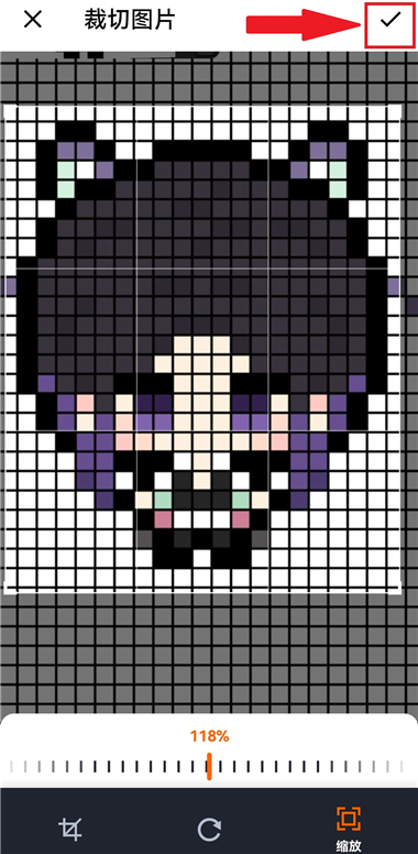 2、在相册选择好图片后进行裁切,裁切完点击右上角的【√】。