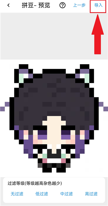 4、在预览这一步,你可以选择过滤等级,等级越高杂色越少,之后点击【导入】。