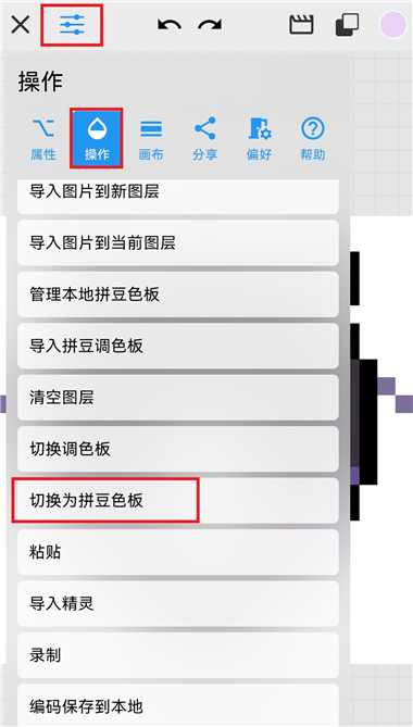 1)同样的,在【操作】这一栏找到【切换为拼豆色板】。