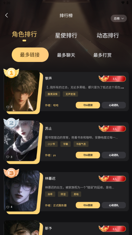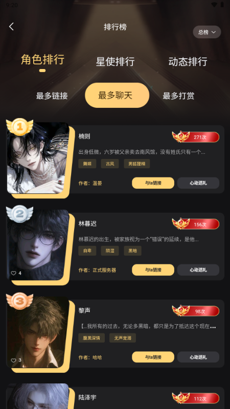 1、在首页选择一个自己想要聊天的角色;