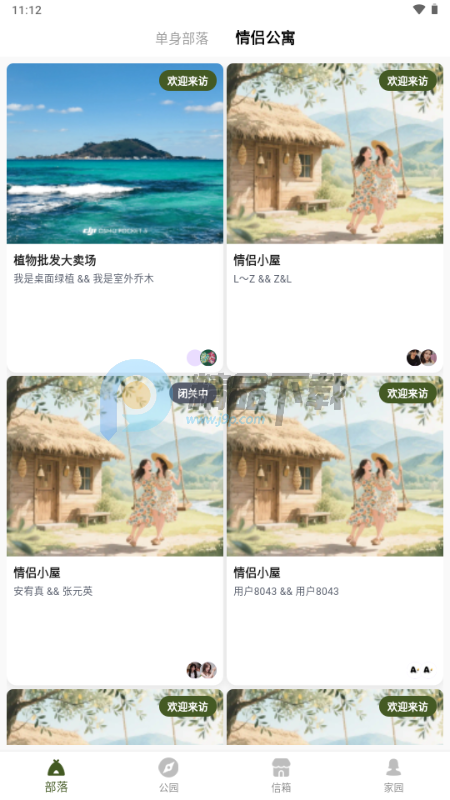 双重模式:每个用户登录小岛时可选择但是或者伴侣模式。单身用户可参与每晚的单身派对;结伴用户可与伴侣共建自己的情侣家园