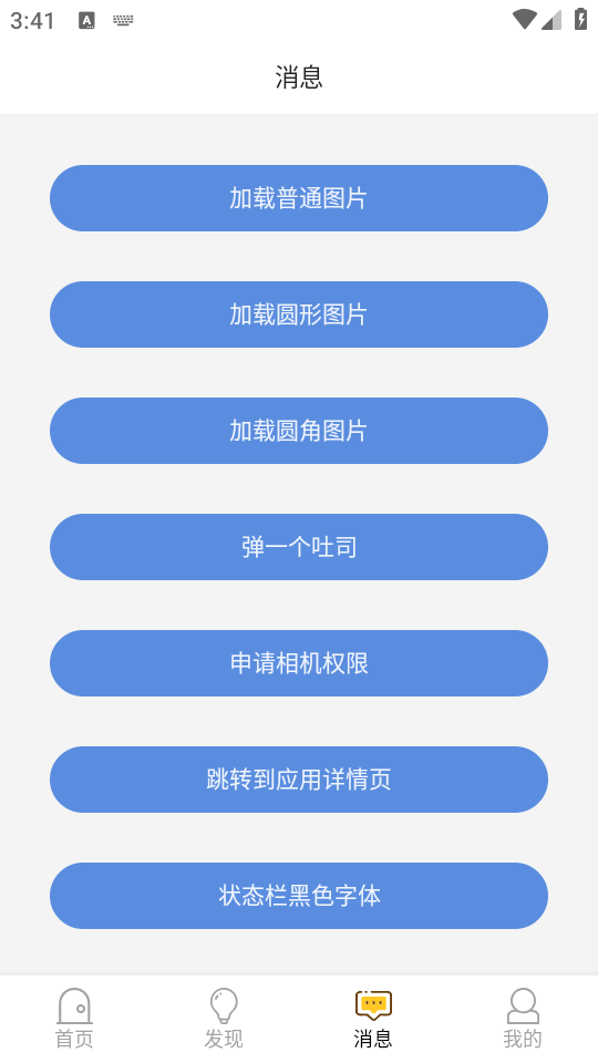 3、在发现页面有很多常用按钮效果。