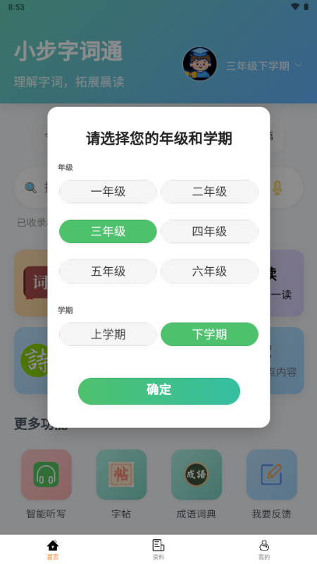 小步字词通app怎么更换年级?