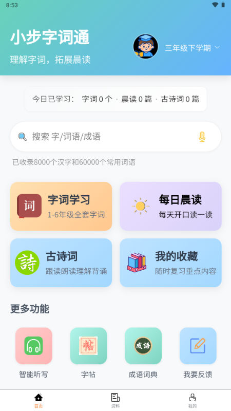 小步字词通是一款面向小学全年级的语文辅助学习工具,围绕字词、朗读、古诗文等核心内容打造系统化学习体系,贴合课堂教学节奏,助力孩子夯实语文基础。应用内置海量生字词资源,涵盖拼音、笔顺、组词、造句等多维讲解,方便学生随时查阅与巩固。