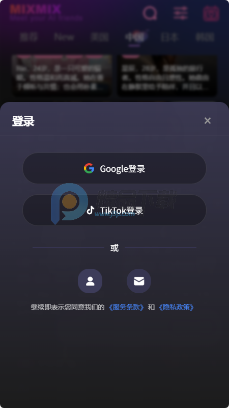 4、在这里选择登录方式,支持谷歌,tiktok,邮箱等;