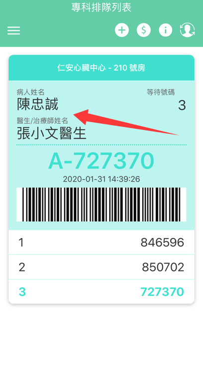 2、登记完成后等待叫号